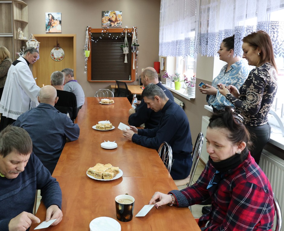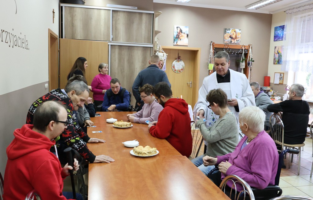 Dzisiaj w naszym Domu odbyła się wizyta duszpasterska poprowadzona przez księdza Proboszcza Ryszarda Barana. Spotkanie rozpoczęło się wspólną kolędą, modlitwą, która wprowadziła atmosferę skupienia i duchowej bliskości. Podczas modlitwy ks. Proboszcz skierował do wszystkich ciepłe słowa wsparcia, podkreślając, jak ważne jest dzielenie się dobrem i wzajemna pomoc w codziennym życiu. Później nadszedł czas na wspólne rozmowy, w trakcie których uczestnicy mieli okazję opowiedzieć o swoich przeżyciach, zarówno o wyzwaniach, jak i o radościach. Tradycyjnie, ks. Proboszcz wręczył pamiątkowe obrazki z błogosławieństwem, stanowiące piękną pamiątkę tego wyjątkowego dnia.