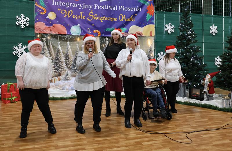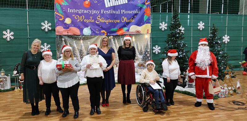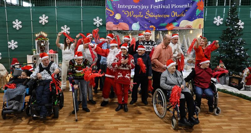 Trzecia edycja Integracyjnego Festiwalu Piosenki „Wesołe Świąteczne Nutki” zamieniła scenę w miejsce pełne wzruszeń, uśmiechów i magicznych, świątecznych dźwięków. To niezwykłe wydarzenie zgromadziło uczestników z różnych placówek i środowisk wsparcia, którzy wnieśli na scenę swój talent, odwagę i serce, tworząc występy trudne do zapomnienia. W festiwalu wzięło udział 15 ośrodków, a każdy z nich zaprezentował własną, unikatową interpretację świątecznego utworu. Publiczność mogła usłyszeć zarówno nastrojowe kolędy, jak i pełne energii piosenki, które zachęcały do rytmicznego klaskania. Niezależnie od stylu, wszystkie występy łączyło jedno, radość wypełniająca całą salę. Scena została udekorowana w prawdziwie świątecznym stylu. W jej centralnym punkcie od początku wydarzenia zagościł Święty Mikołaj, który po każdym występie obdarował artystów upominkiem. Dodatkową atrakcją była specjalnie przygotowana na tę okazję fotobudka, która natychmiast zdobyła serca obecnych. Wykonawcy otrzymali dyplomy oraz symboliczne prezenty, podkreślające ich wyjątkowy wkład w tworzenie tego świątecznego spotkania. Festiwal Wesołych Świątecznych Nutek pokazuje, że magia świąt zaczyna się nie od prezentów, czy dekoracji, lecz od ludzi, ich pasji, odwagi, chęci dzielenia się talentem i wzajemnego wsparcia. To właśnie tutaj, pośród muzyki, uśmiechów i życzliwości, rodzi się prawdziwa świąteczna magia, którą każdy zabiera ze sobą jeszcze długo po tym, gdy ucichnie ostatnia nuta.